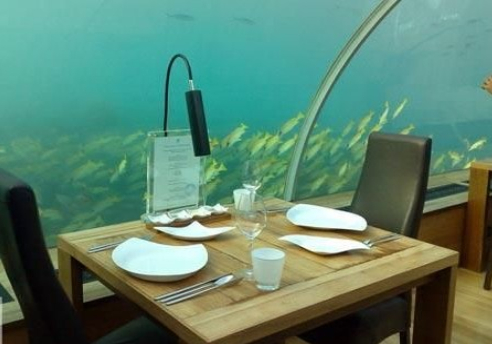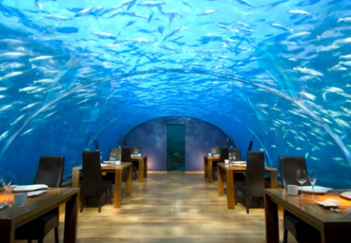 馬爾代夫港麗度假開設(shè)的第一個全玻璃海底餐廳。該餐廳為了慶祝他們的周年紀念而建,為客人也提供了體驗機會,不僅吃海下的,還在海下吃,睡在海下。真的是不可思議。意境也不用說了,是多么壯麗。