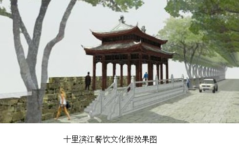 劉剛說,在10公里的濱江大道上,規(guī)劃了八個(gè)景觀節(jié)點(diǎn),沿江的城墻以及6座城門,“這是在原址上再現(xiàn)清代城門。”