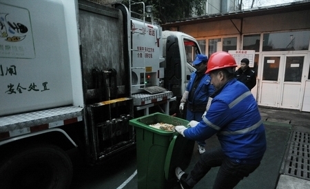金牛區城管部門從去年對轄區內餐飲企業宣傳餐廚垃圾統一收運、處理政策和法規,簽訂集中統一處理餐廚垃圾協議。為餐飲企業免費提供專用餐廚垃圾桶,統一收集餐廚垃圾。每天中午開始,城管局安排專用的餐廚垃圾車到轄區內挨個收取餐廚垃圾。各個街道辦指定專門的城管隊員協助餐廚垃圾車收運垃圾,同時監督餐飲企業移交餐廚垃圾。餐廚垃圾車最后把餐廚垃圾全部運往雙流縣的餐廚垃圾處理廠集中處理。據五塊石街道辦統計,該街道辦90%餐飲企業都簽署了集中統一處理餐廚垃圾協議。