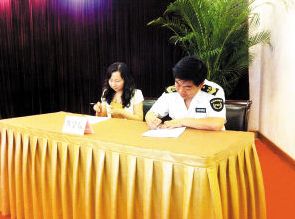 市食藥監(jiān)局負責(zé)人與餐廳負責(zé)人簽訂食品安全責(zé)任書