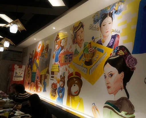 然而追求美食本身的同時,已不能滿足立志做一個不一樣火鍋店的愿望。店里最醒目的就是一副巨大的18平米手繪墻畫。這個墻畫里面可是藏著貨真價實的“紅包”——每一位進店的小伙伴都可以抽取紅包拿到問題,去壁畫中尋找答案,答對就有對應的現金折扣。還有唱片墻、紅酒墻、照片墻……幾乎每一個角落里面都是暗藏玄機,店內百種創意玩法!
